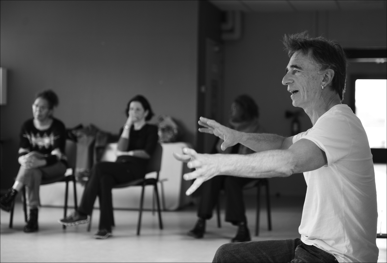 « Le théâtre et sa pratique sont avant tout pour moi un endroit de rencontre et d’échange, un peu comme la métaphore d’une société bienfaisante qui créerait du lien plutôt que de l’isolement. Les premières séances sont avant tout un temps de rencontre avec les participants. De ces séances émergent des thèmes, des idées qui vont nourrir la proposition et permettre de définir plus précisément la matière artistique que nous utiliserons. Il s’agira ensuite de proposer une trame, un récit oral duquel nous pourrons extraire des thèmes qui nous touchent et élaborer une forme artistique qui soit notre œuvre. Tout le travail s’élabore à partir d’improvisations. La dynamique de groupe et la place de chacun sont des éléments importants auxquels nous sommes attentifs. » Richard Grolleau