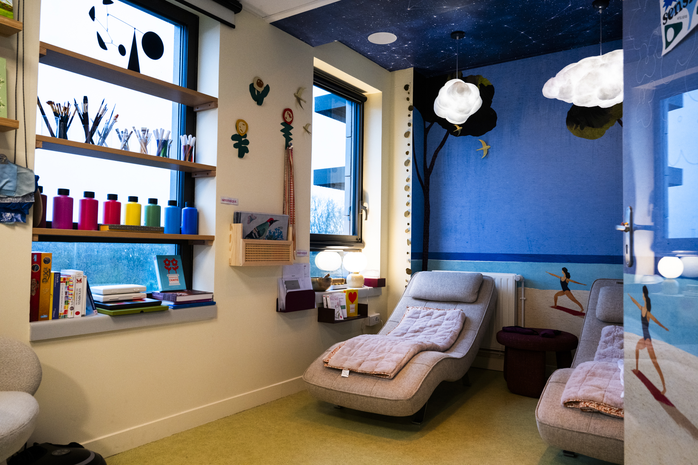 L’Hôpital Saint-Vincent de Paul (Groupement des Hôpitaux de l’Institut Catholique de Lille) inaugure ainsi une salle multisensorielle dédiée à l’art-thérapie au sein de son unité de soins palliatifs. Ce nouvel espace imaginé en dehors des codes de l’hôpital, conçu avec le Fonds de dotation Capsule d’Art, propose des séances d’art-thérapie aux patients, à leurs proches et un lieu de ressourcement pour les équipes. Monika Forro, conceptrice de la première capsule et cheffe de projet pour Capsule d’Art en a été le maitre d’oeuvre pour accompagner l’établissement dans sa création.