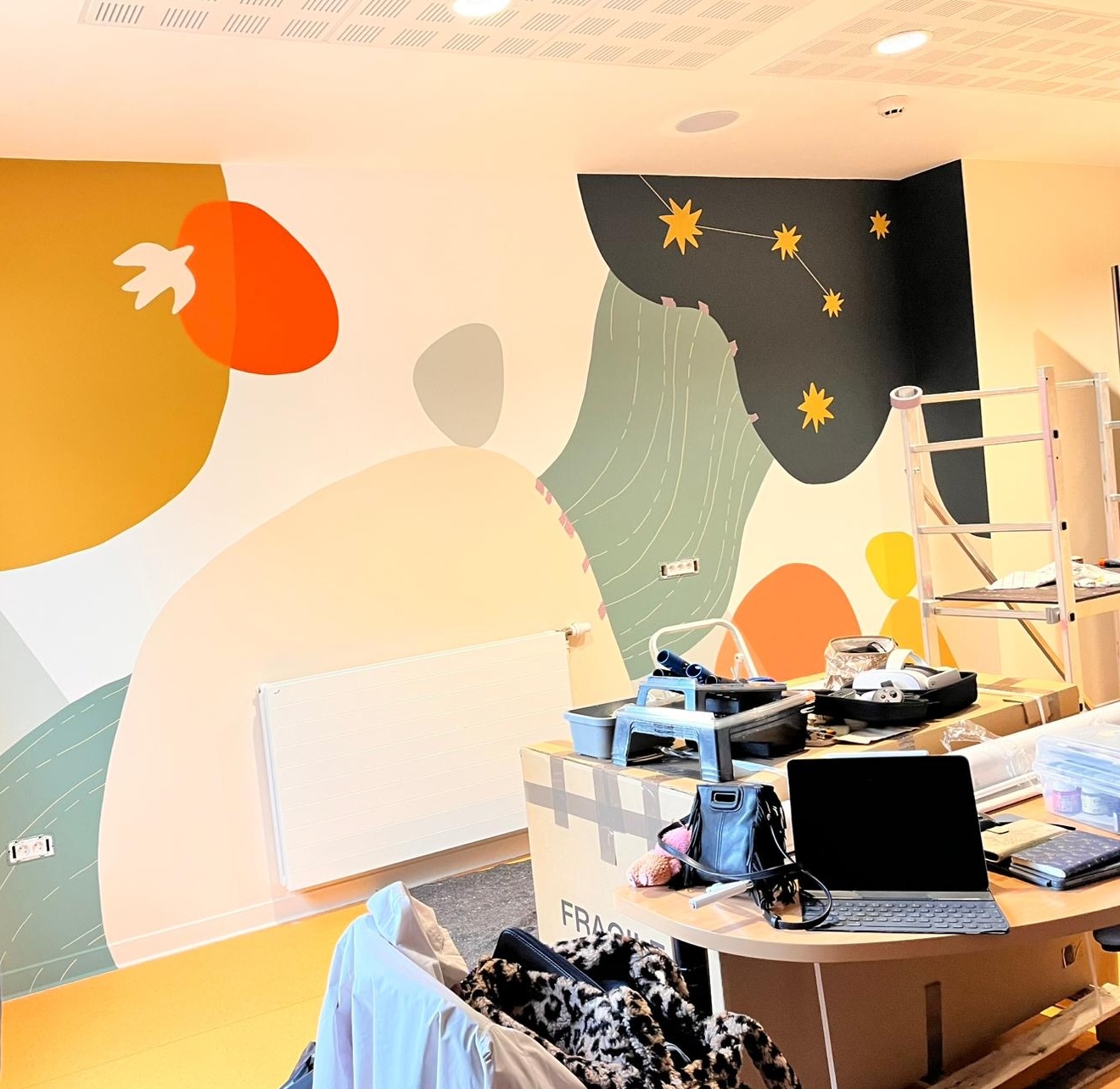 « Je tiens à ce que chaque capsule ait sa propre identité. Chaque projet est donc pensé en concertation avec les équipes du service et l’art-thérapeute qui a été choisi.e. Il ne s’agit pas de créer des franchises mais bien des bulles, des cocons dans lesquels les patients, les proches et les soignants peuvent venir se ressourcer et y trouver une âme. » Monika Forro, cheffe de projet pour Capsule d’Art