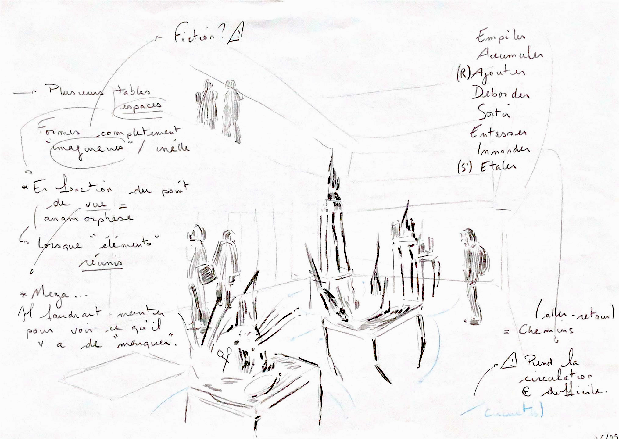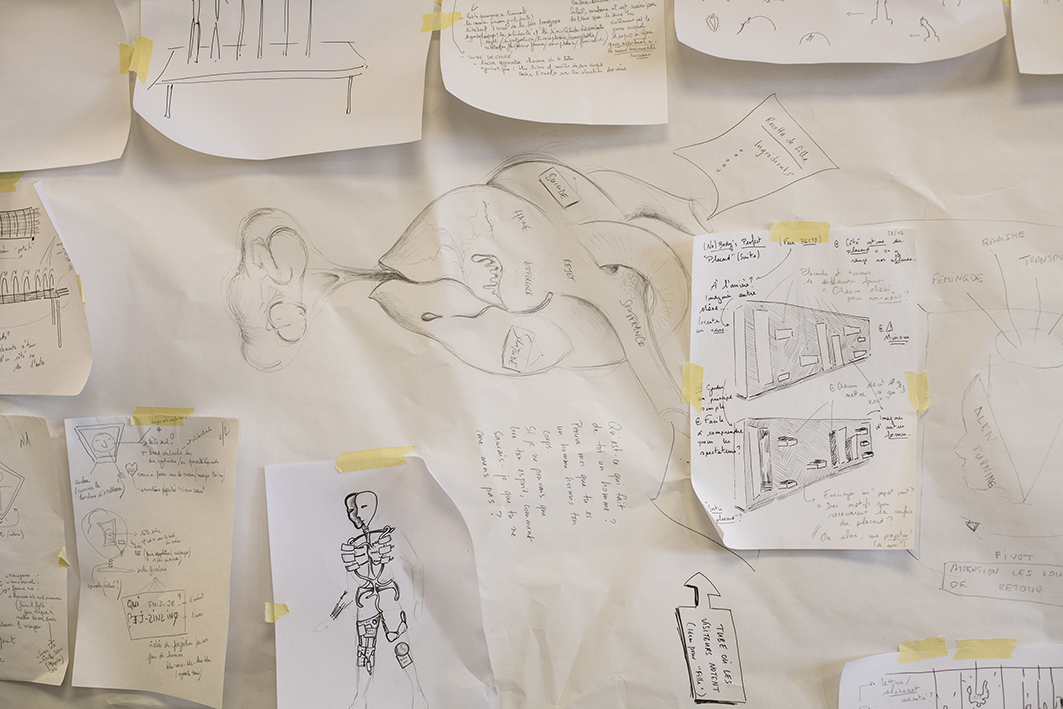 L’oeuvre plastique interroge la façon dont on se définit au sein de la société, comment on regarde les autres et comment on est regardé en tant que personne entière, dans son genre, dans son identité sociale, dans son apparence. Toutes ces « cases » induites par la société sont concrètement matérialisées dans cette production artistique. L’oeuvre se présente sous la forme d’une installation autour de laquelle le visiteur peut découvrir des espaces faisant apparaître « des mondes intérieurs ». Le spectateur est également invité à pencher l’oreille et à écouter les textes d’Olivia Rosenthal, écrits à partir d’entretiens réalisés avec le personnel soignant de l’unité d’endocrinologie et les participants aux ateliers.