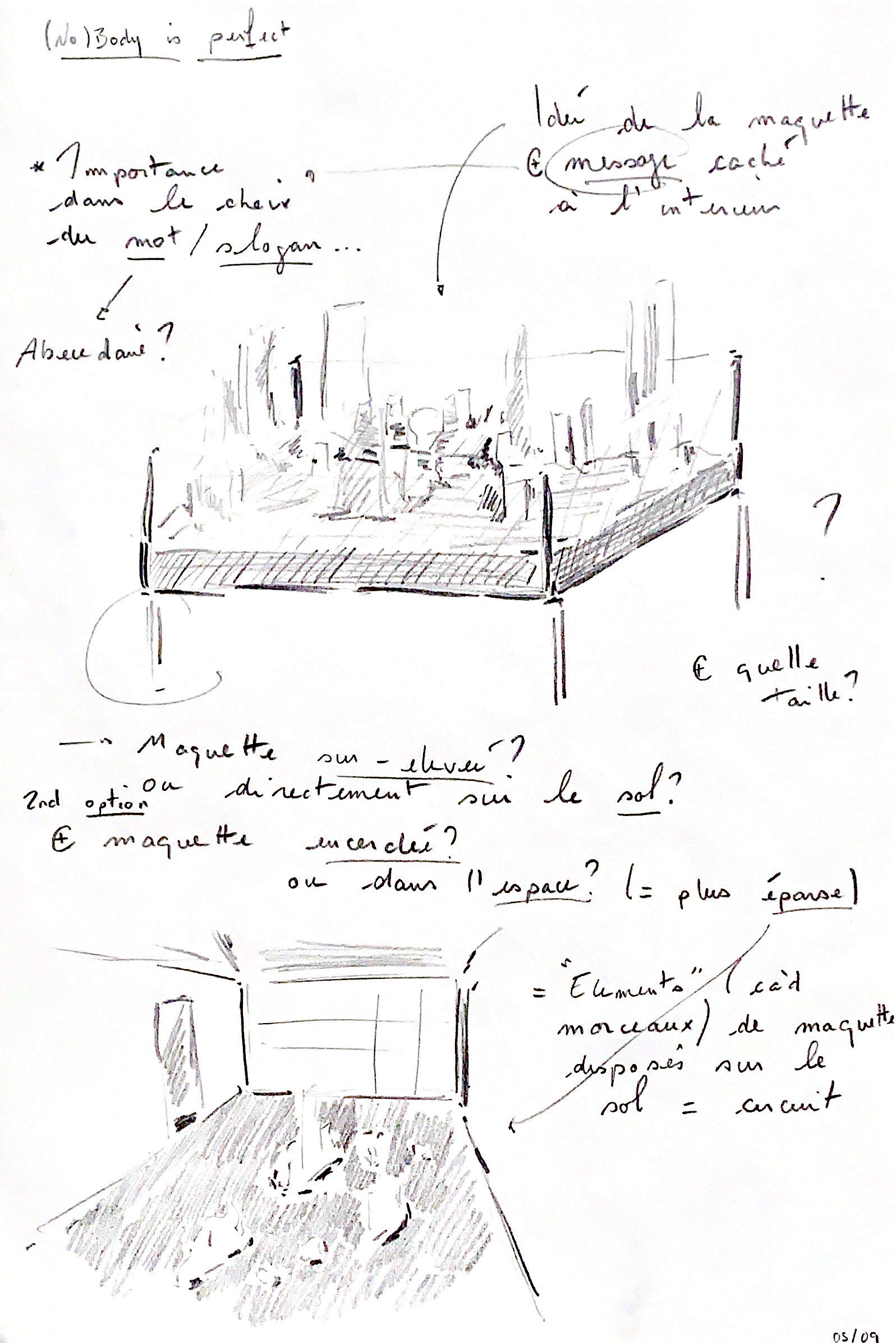 La création (No) Body is perfect s’est réalisé dans le cadre d’ateliers artistiques avec des participants en transition de genre réunis pour échanger et réfléchir ensemble sur l’identité de genre à travers une démarche artistique. Chaque participant a amené, par son expérience personnelle, une projection mentale de son intimité et de son identité.