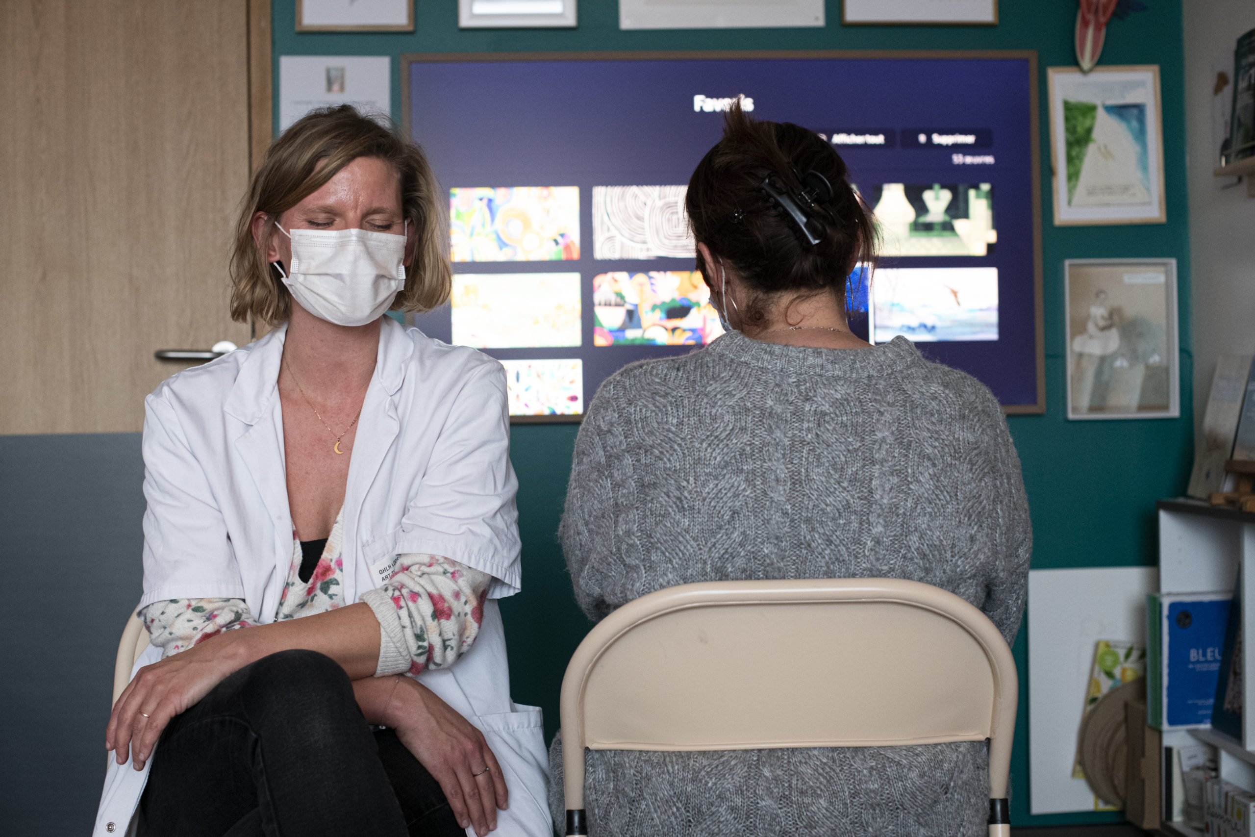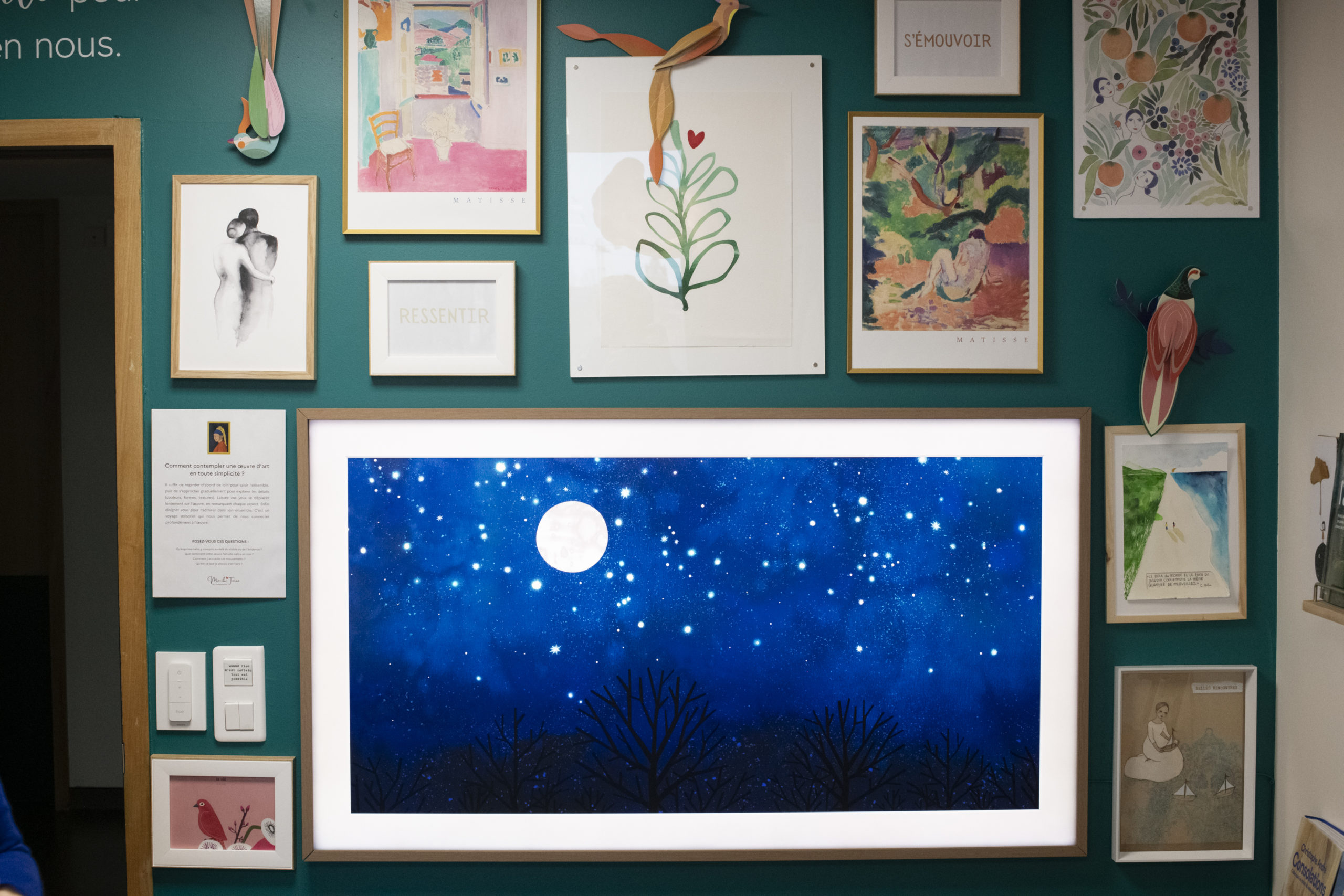 Capsule d’Art soutient ce projet en tant que mécène avant de le porter plus loin en tant que Fonds opérateur. C’est en effet grâce à la détermination de Monika Forro, art-thérapeute en soins palliatifs (entre autres) depuis de nombreuses années et à l’accueil enthousiaste du projet par le service du Groupe Hospitalier Loos Haubourdin dans le Nord, que ce projet a émergé en 2022. Convaincue des bienfaits de l’art sur la santé psychique des patients qu’elle rencontre mais aussi auprès des familles endeuillées et des soignants, Monika Forro a eu l’idée de dédier une salle de l’Unité de Soins Palliatifs à la rencontre avec l’art. Jusqu’à présent, elle rencontrait les patients principalement dans leur chambre ou dans une salle qui pouvait également faire office de. Monika Forro utilisait déjà la projection d’œuvre d’art, la musique ou la pratique artistique en fonction des besoins du patient.